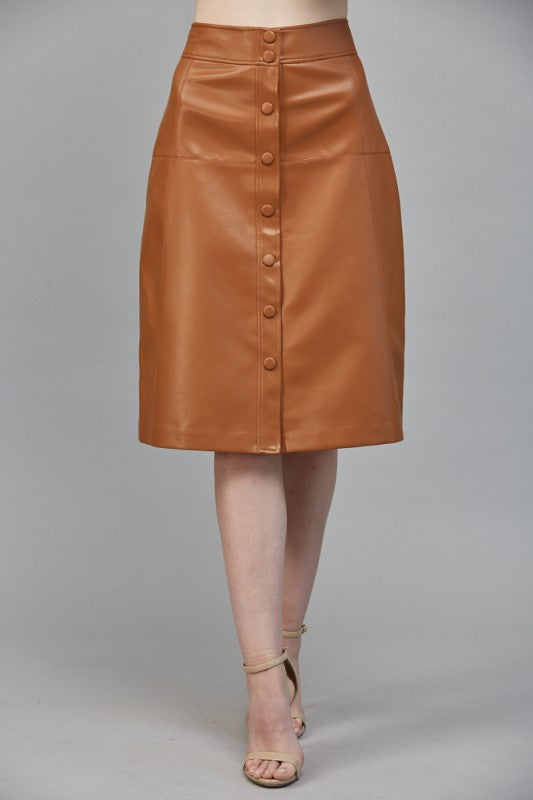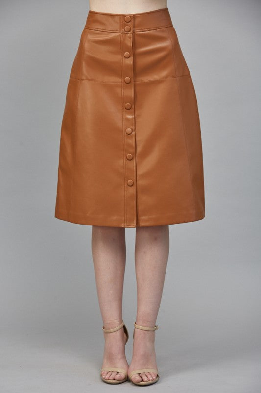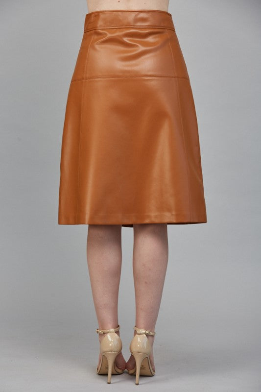 HIGH WAISTED A-LINE FAUX LEATHER SKIRT