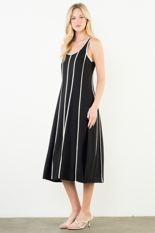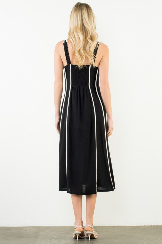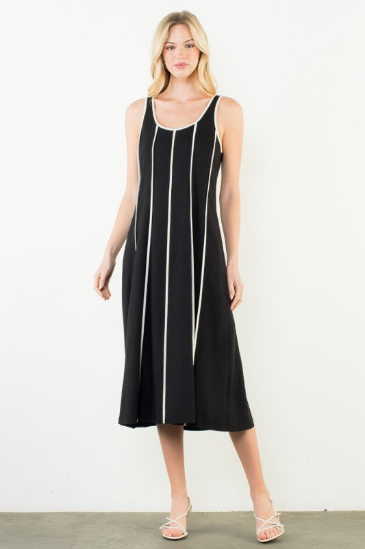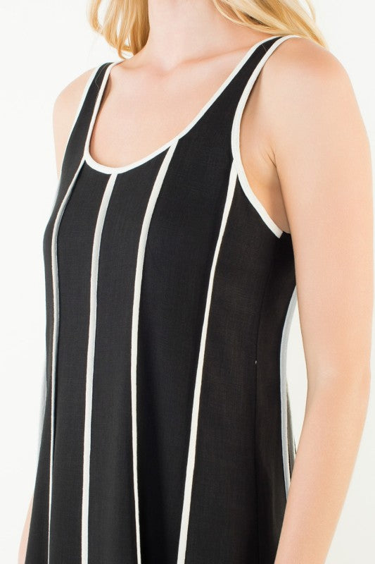 THML LEXI BLACK SLEEVELESS CONTRAST PIPING DRESS