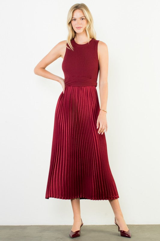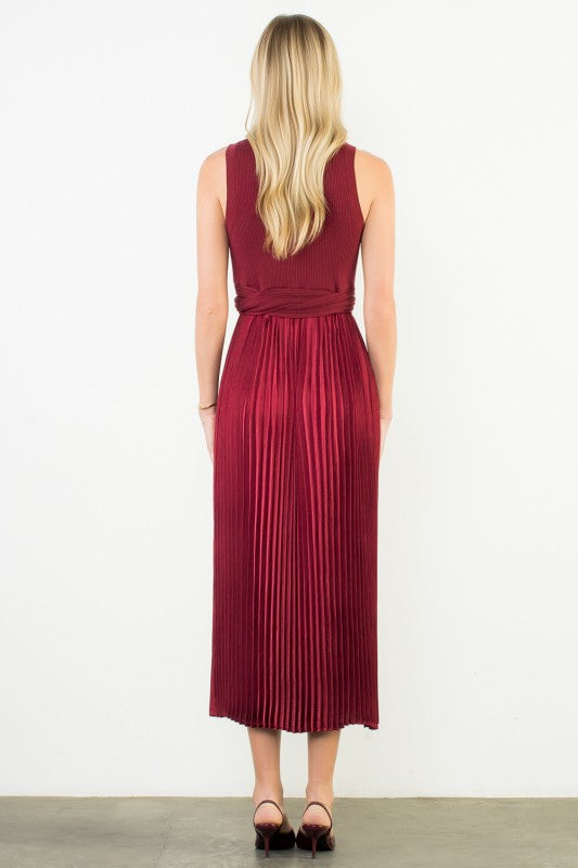 THML BURGUNDY SLEEVELESS MIXED MEDIA DRESS