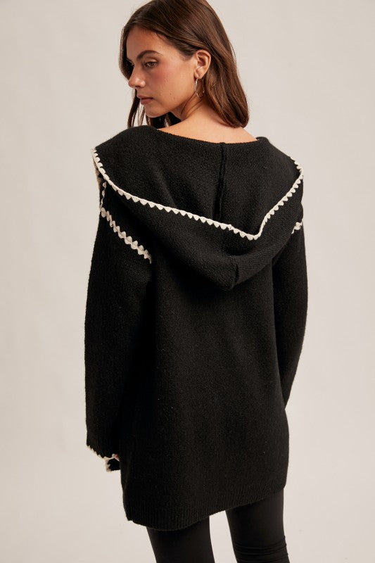 BLACK STITCH DETAIL HOODED CARDIGAN