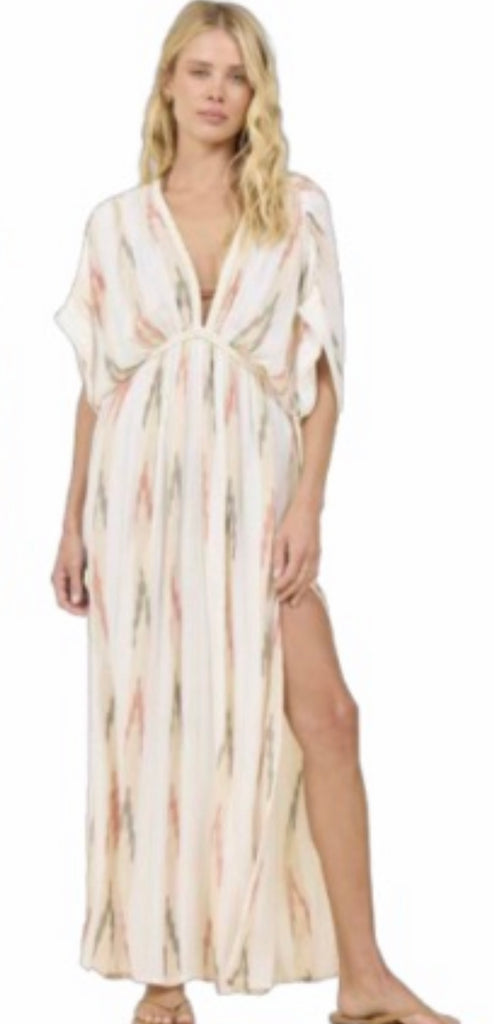 SURF GYPSY AZTEC STRIPE LUREX MAXI DRESS BRAID DETAIL