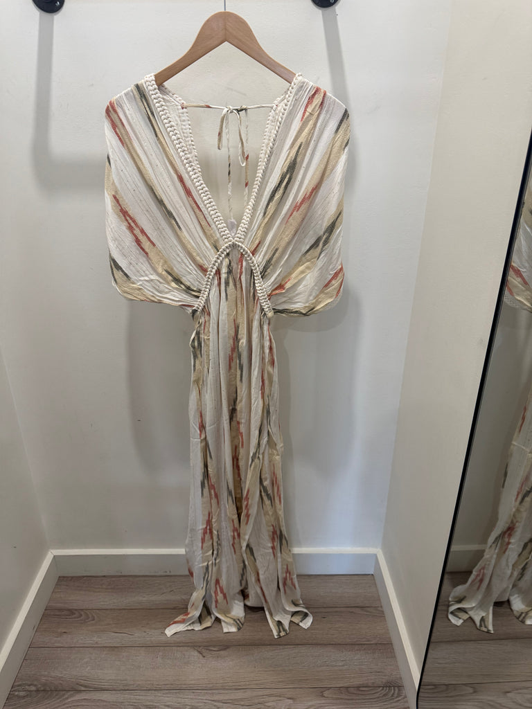 AZTEC STRIPE LUREX MAXI DRESS BRAID DETAIL