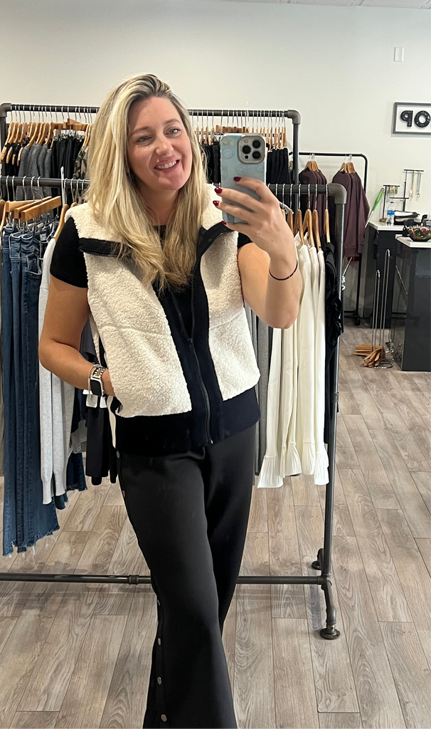 - OFF WHITE & BLACK ZIP UP SHERPA VEST