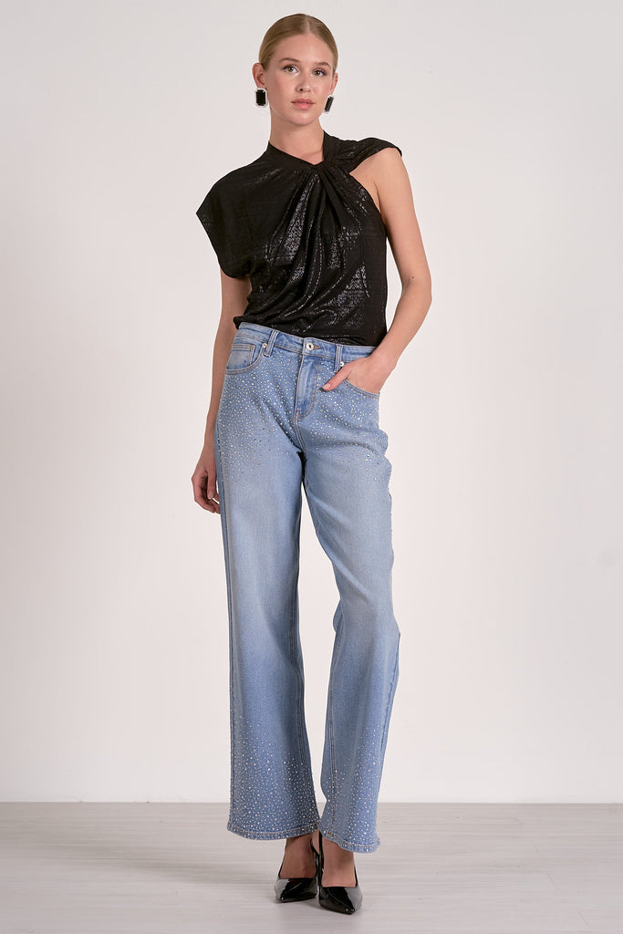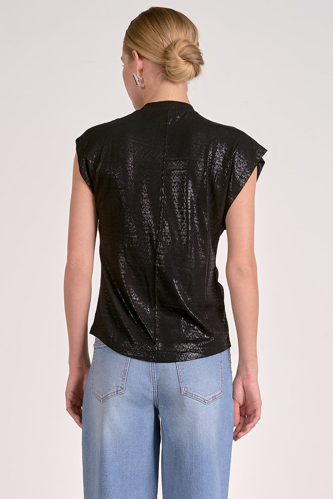 BLACK SHORT SLEEVE TWIST SHOULDER TOP