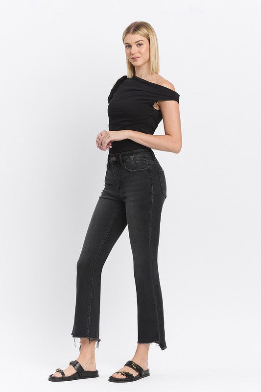 VERVET HIGH RISE RAW STEP HEM CROP FLARE JEANS RAVEN
