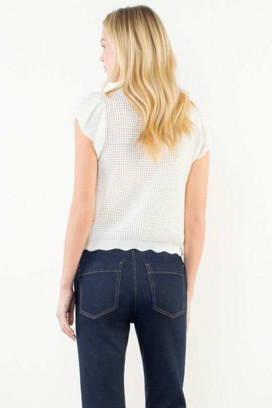 THML WHITE SCALLOP DETAIL KNIT TOP